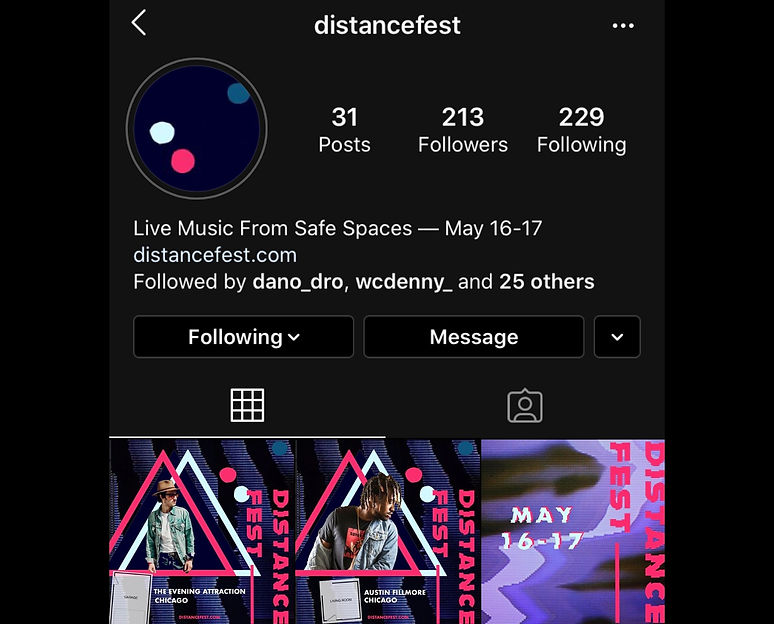 DISTANCE FEST is a DIGITAL MUSICAL EXPERIENCE featuring LIVE ARTISTS playing within the confines of your own HOME — GLITCHFEST 2020 DESIGN WORK